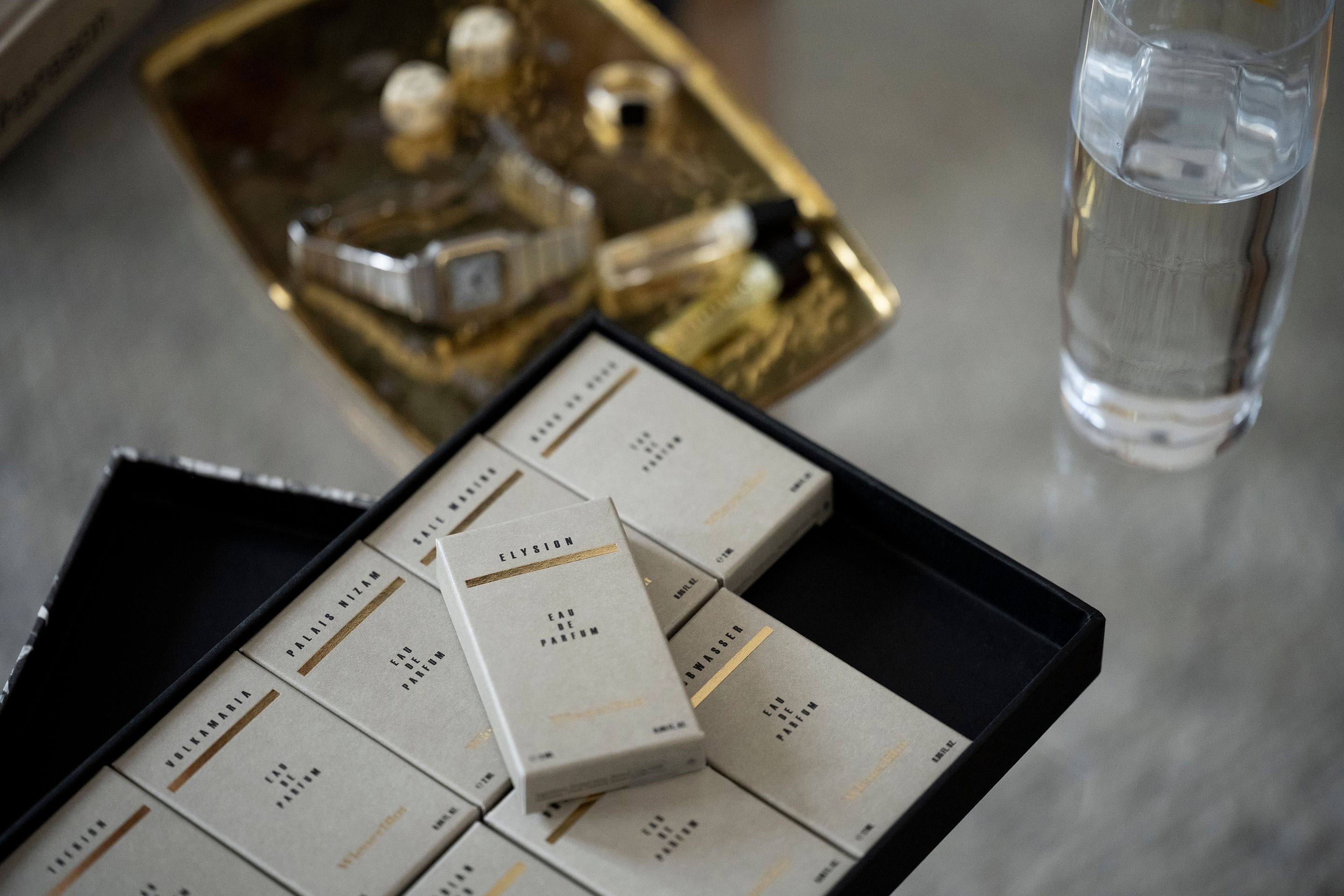 Explore the world of WienerBlut through this curated set of all 12 signature fragrances. Each scent comes in a 2ml spray vial, individually housed in its own minimalist paper box. A refined invitation to indulge, experiment, and discover your favorite.