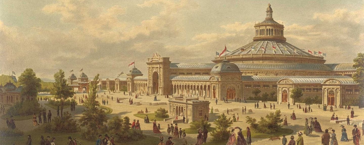 Abb. 4. Franz Alt, Rotunde und Ausstellungsgelände (Ausschnitt), 1873 (©Österreichische Nationalbibliothek)